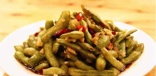 2、锅中放入适量的油,待油热后放入四季豆炒熟;