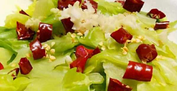 材料:白菜半个、花生油20克、盐1茶匙、葱1片、蒜5瓣、花椒1把、干辣椒6条、生抽2汤匙、香醋2茶匙醋