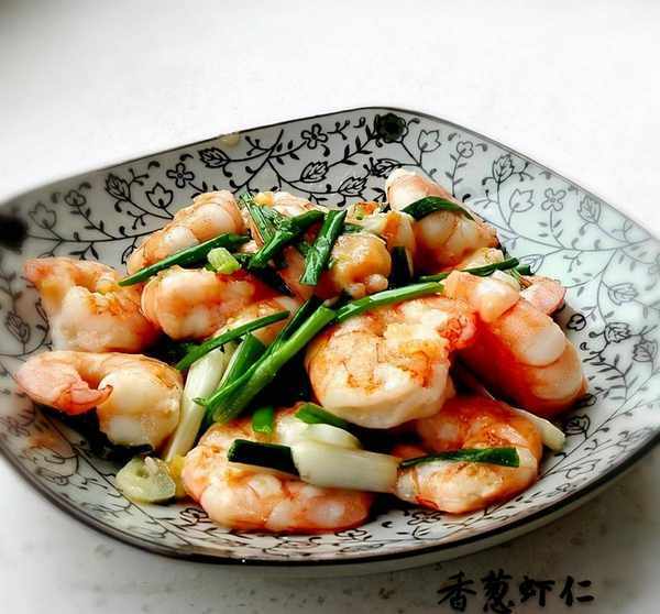 材料:虾仁300克,葱3根,姜末2克,蒜末5克;