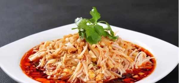 材料:肥牛卷250克,金针菇200克,油适量,蒜末适量,葱花适量,红橄榄豆瓣酱适量,鸡精适量