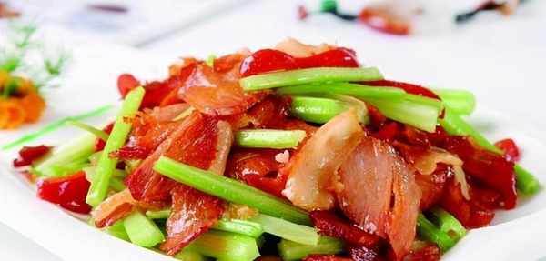 做法:1、香菜去根,摘叶保存;胡萝卜切成细条,和芹菜一样粗;培根片;大蒜切片。