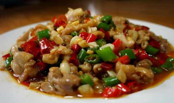 配料表:青红椒;鸡精加盐和糖;年轻的公鸡;泡椒;腌姜;干青花椒;老姜;蒜;料酒酱油;淀粉