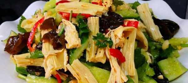 配料表:黄瓜、腐竹、大蒜、盐、香油、辣椒油、醋、酱油