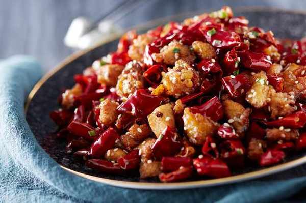 辣子鸡是一道以鸡肉和辣椒为主要食材的湘菜,色泽鲜艳、香气扑鼻、口感鲜辣,是湘菜中的一道经典菜肴。