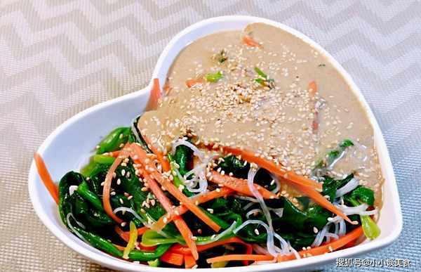 配料菠菜、芝麻酱、盐、味精、糖、蒜泥
