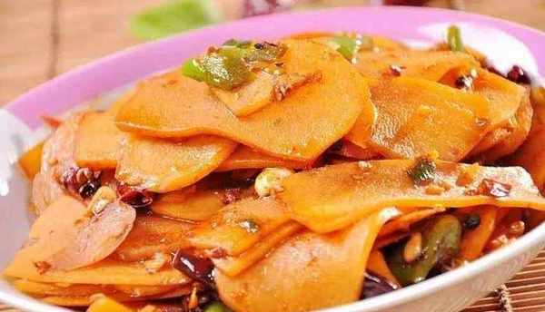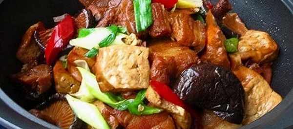 做法:1、猪肉切薄片,入油锅炸至出油微黄,加入葱、姜、八角翻炒片刻。