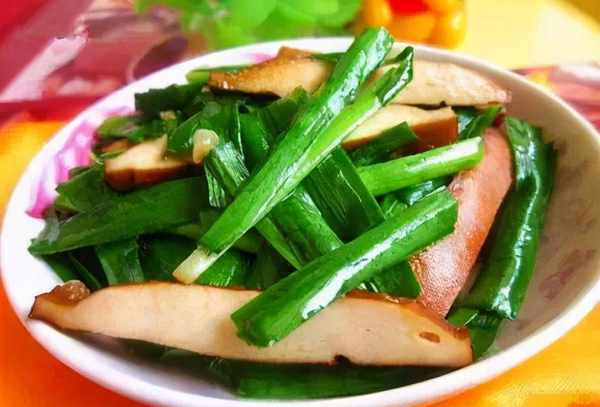 方法1)将韭菜切成寸块,将干韭菜切成细条,将洋葱切成两半