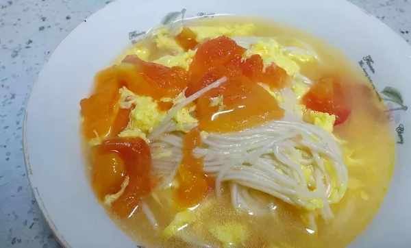 材料:西红柿一个,洗净去皮切大块;一个鸡蛋,打开并炒。