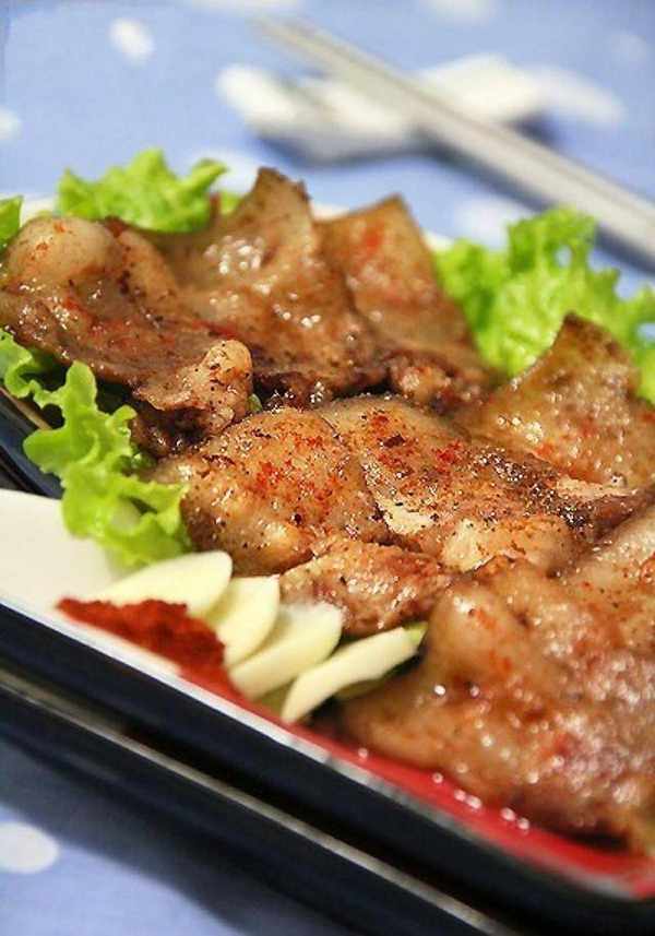 4.加热锅。将肉片均匀放入锅中,中小火煎制。加入油搅拌至两面呈金黄色,然后从锅中取出。与生菜、蒜瓣或酱汁一起食用。