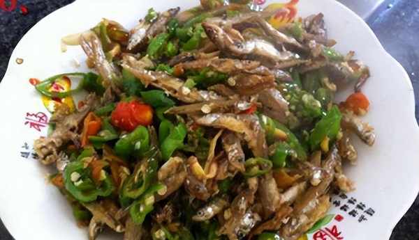 配料:鱼干150克;鲜辣椒;盐;姜末
