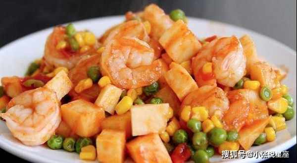 材料:虾仁、冬笋、各种蔬菜、葱、姜、料酒、番茄酱、泡椒、盐