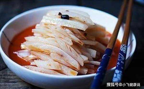 3、将切好的藕片彻底捞出,加入所有调料拌匀,放入冰箱冷藏半天,会更加鲜美可口。