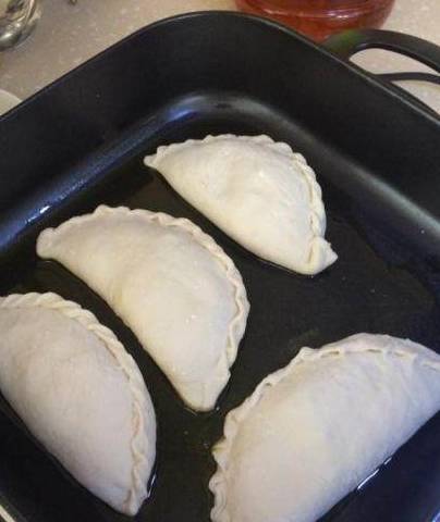 平底锅放油,5分热,放下韭菜盒子煎成两面金黄。