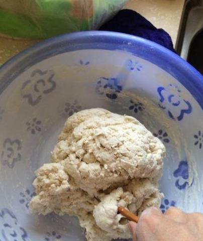 开始和面一定要温水或面哦(2将面粉放入面盆内,一边倒入70克热开水,一边用筷子迅速搅拌成小块状;)