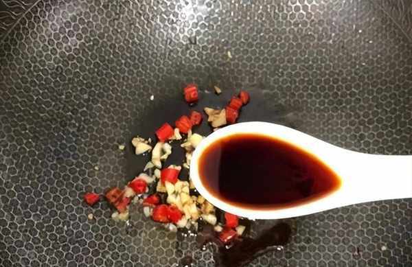 第三步,将蒜茸和小米剁碎放入麻辣锅中,加入生抽、盐、糖和香醋。