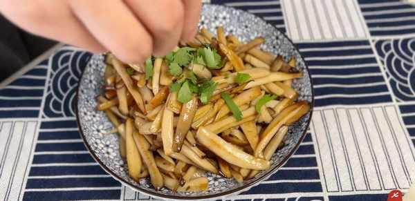 这道非常简单的干香杏鲍菇就做好了。这道菜的特点是制作简单。杏鲍菇洗净切块,用少许油炒至水分收干,撒少许盐和糖提味。味道平淡,有点像吃鲍鱼。