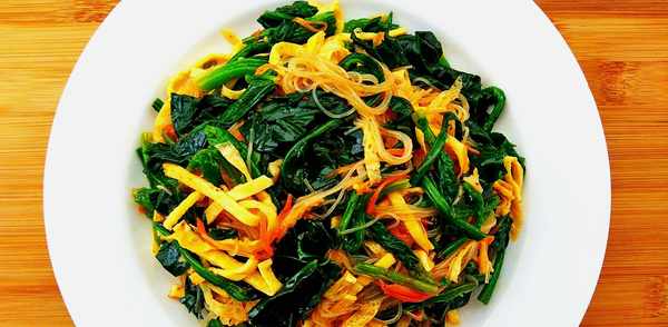 做法:1、先将菠菜洗净,去根、药明等杂质,切成片,用热水烫一下捞出;