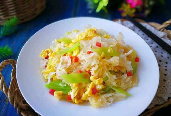 材料:白蘑菇、鸡蛋、桃园健民西瓜酱、葱姜、盐