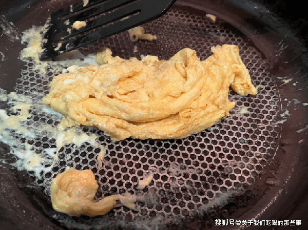 2、鸡蛋打入碗中搅拌均匀,调一个料汁,碗里加入食盐、生抽、老抽、蚝油、清水搅拌均匀。起锅烧油,八成热时倒入鸡蛋液,大火煎熟,炒成大块后盛出。