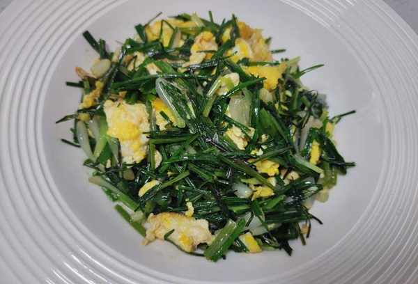 这样做出来的野葱,非常的松软可口,而且还是很有营养的土,因为加了鸡蛋,鸡蛋的口感松软可口,特别好吃。