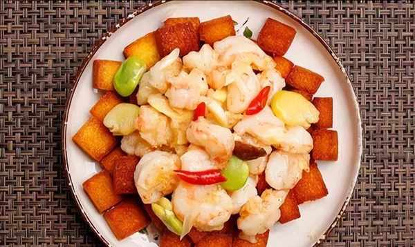 原料:虾仁150克,花椒1克,淀粉10克,红辣椒10克,香菇15克,盐3克,葱10克,姜10克,鸡粉10克,白糖5克、鲜豆50克、鸡蛋1个、面包1片。