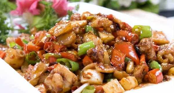 1.将鸡肉剁成小块,油热至冒烟,倒入鸡块翻炒。
