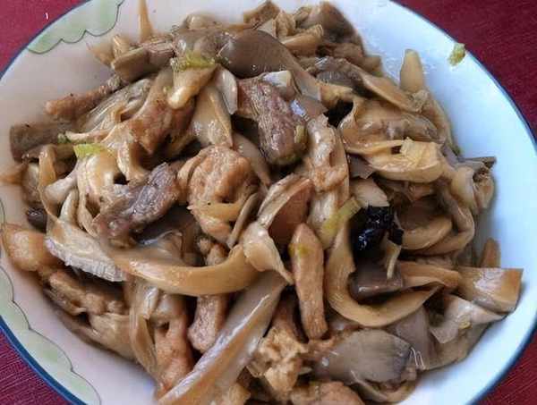 7、锅内倒入少许油,放入切好的平菇翻炒去平菇的水分,盛出。