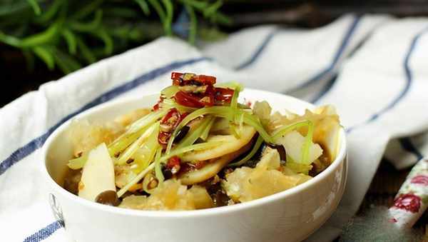材料:银耳8克,藕适量,铁山药适量,黑蘑菇8克,芹菜100克,泡椒,蒜5瓣,酱油适量,酱油适量,蚝油适量,适量的油和适量的盐