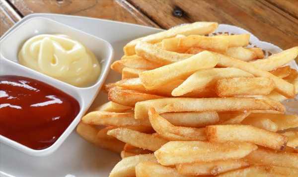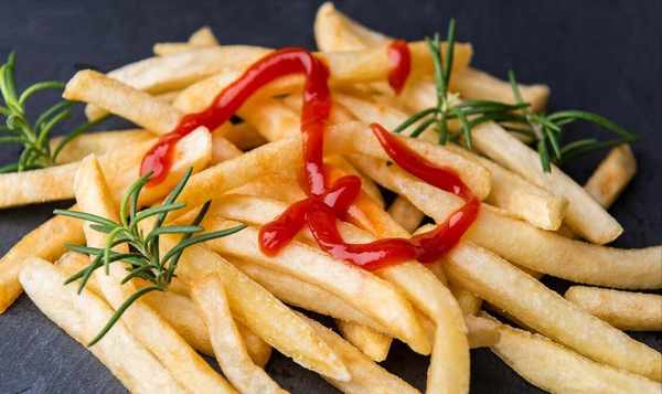 重新烘烤时味道会更好。出锅后,趁热撒点盐。吃的时候加点盐是很好的。为了更正宗的味道,搭配番茄酱一起吃。