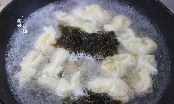 7、将馄饨放入开水中,煮至馄饨浮起,再加入紫菜一起煮。馄饨煮熟后关火。