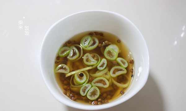 3.将辣椒、洋葱、姜先用开水泡软,待凉。