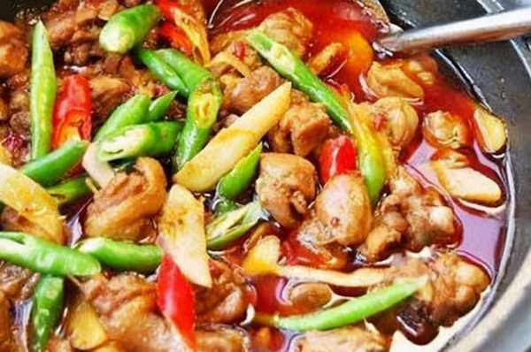 做法:1.将鸡肉洗净,切成小块(不要太大,比拇指大一点即可)。洗净所有的新鲜生姜和青红辣椒。姜切片。准备南瓜、蒜瓣和郫县西洋菜。