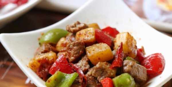 原料:牛肉、土豆、青红椒、盐、芝麻、孜然粉、生抽、料酒、干红椒、姜、油、糖、淀粉、老抽、辣椒粉
