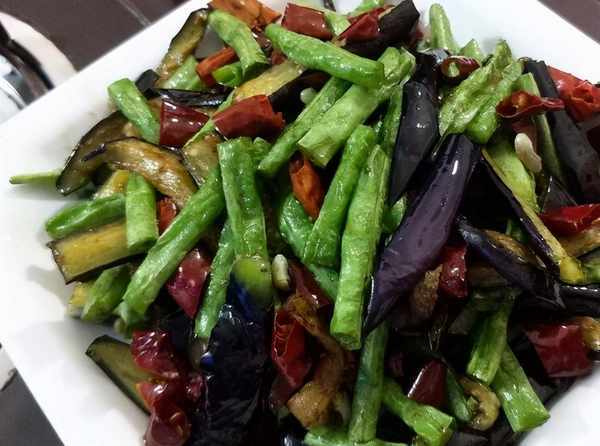 2.平底锅烧热,倒入适量油,温热后加入桂皮和干辣椒炒香,再加入压好的茄子和豆角炒软;3、豆子要烤的时间长一些。食用前应煮熟,倒入半杯水;