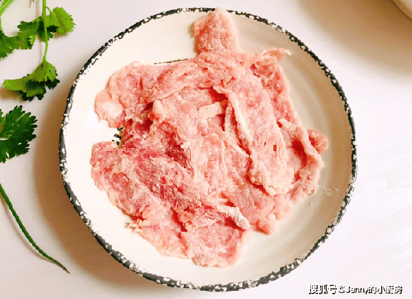 猪瘦肉切成肉片,切好后加水抓洗,去掉血水,反复几次后挤干水分。这么处理后做出来的汤不腥,也不影响汤色。