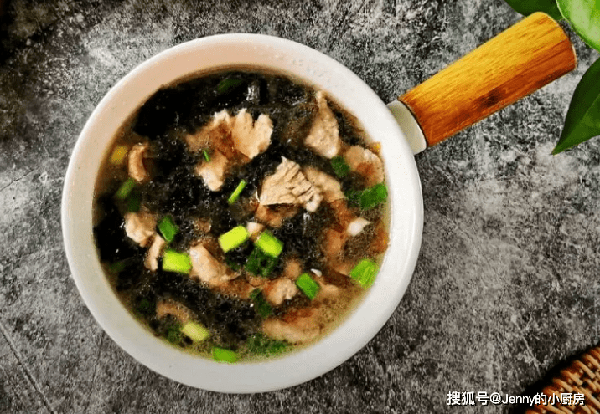 最后放入紫菜、葱花、盐、胡椒粉搅拌均匀,再加少许香油,这道汤就做好了。