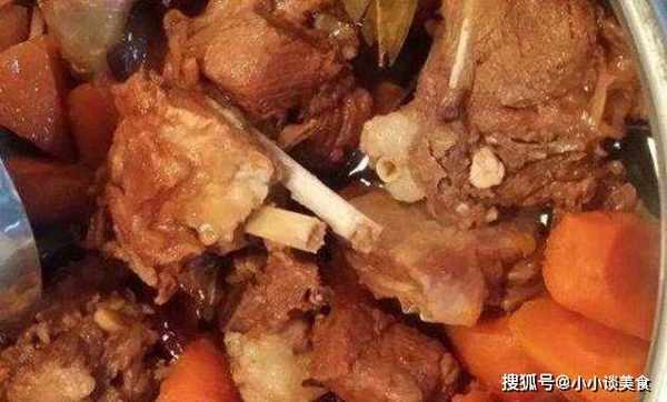 5.加入开水至没过羊排,加盐调味,转入高压锅,放入香料盒(有花椒、山楂),大火蒸,小火煮30分钟左右,放入胡萝卜煮至软,然后加入泡好的粉丝煮至熟。