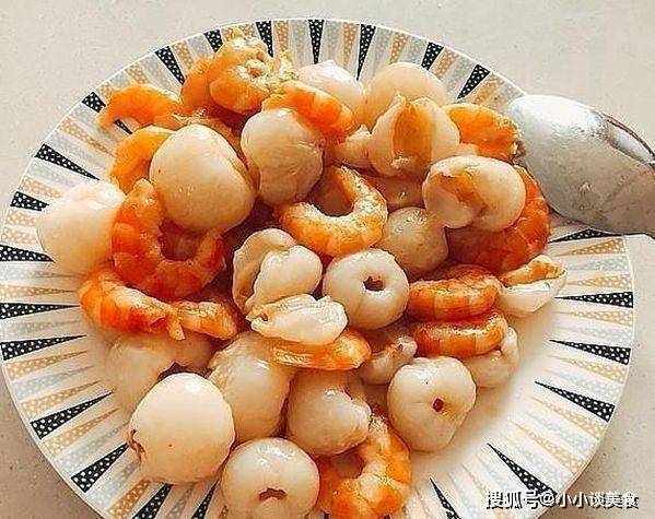 做法一、原料:虾、荔枝。将荔枝洗净,去皮。