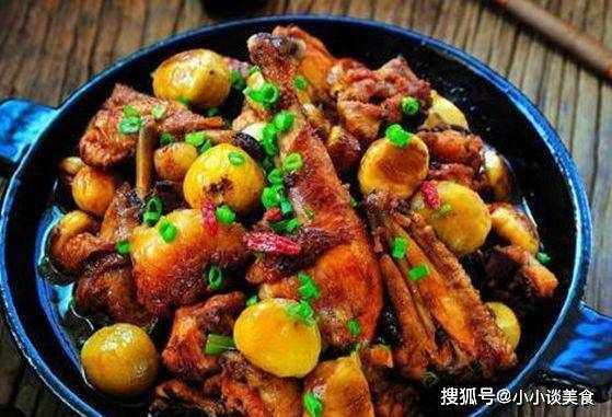 材料:鸡1只、栗子16粒、煮鹌鹑蛋18个、青椒1个、胡萝卜1条、葱姜各片、八角1个、桂皮2小块