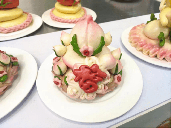 3月16日,在由山东省粮食和物资储备局、山东省商务厅主办的第三届“齐鲁粮油”花样面点大赛决赛现场,西安爱菊花馍选手创作了一组“福禄寿喜财”面点作品。可爱的兔子、含苞待放的花朵、漂亮的寿桃,华丽的造型组合让人惊叹,作品获得大赛三等奖。