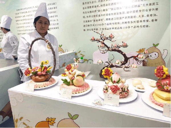 “今天代表西安爱菊粮油工业集团来参赛,并获得了三等奖,我们很开心,能将我们的手艺展示给大家,得到认可,这是我们前行的动力。”刘淑梅笑着说,这几样作品不仅好看,好吃,关键是还能讲故事,展示的五个造型,是从福禄寿喜财五个方面进行创作,将美好的祝福送给大家。
