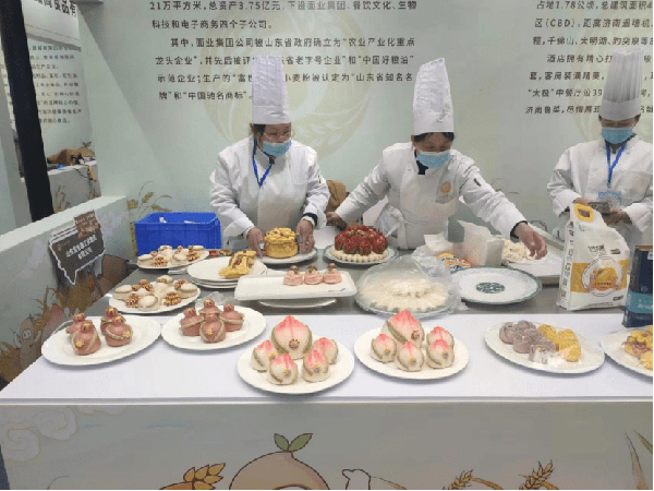 3月16日,由山东省粮食和物资储备局、山东省商务厅主办的第三届“齐鲁粮油”花样面点大赛决赛现场,山东富世康工贸集团有限公司选手创作的面点造型融入了美好的寓意。象征子孙满堂的石榴、健康长寿的寿桃、吉祥如意的兔子等作品吸引观众拍照留念。