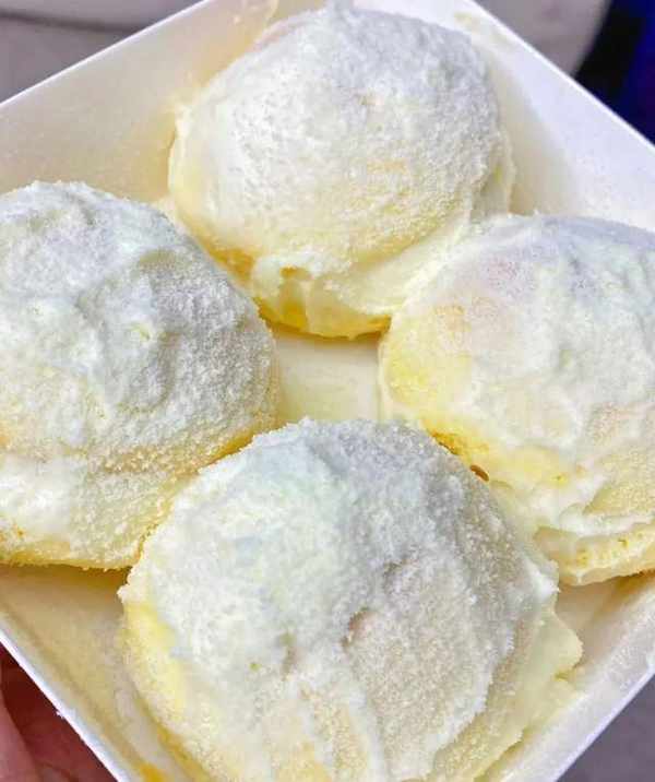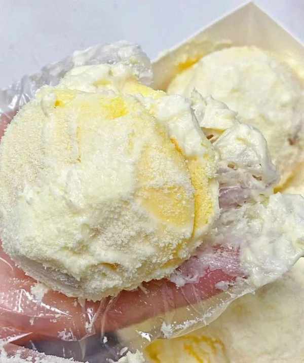 吃起来有种空口吃奶盖的感觉,冰冰凉凉的,纯白的颜色仿佛掉进了牛奶组成的世界里,外面撒了一层原味奶粉,不会特别甜腻。