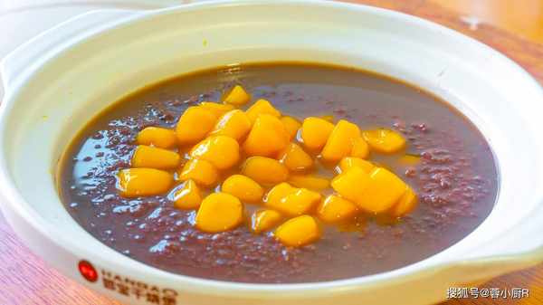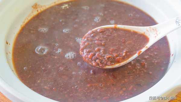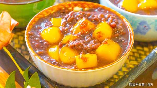 11、这时候红豆汤也煮好了,细腻香甜,超级浓郁,完全都煮烂了,电饭煲煮红豆汤真的是简单又好喝,盛出来直接倒入砂锅里。