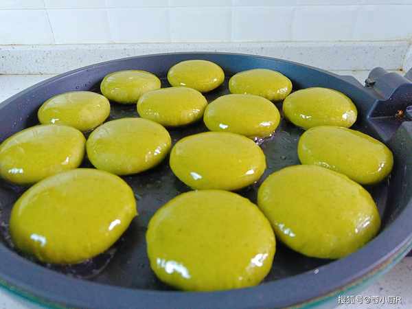 3、这个小饼是非常容易熟的,烙至两面微微金黄,按压小饼能迅速回弹就可以出锅了。
