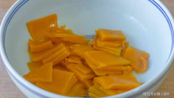 3、煮红豆的时间我们来做好吃的丸子,南瓜200克,去皮后切片,然后装入盘里上锅蒸熟。