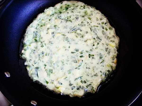 韭菜的吃法当然很多,做饺子、蒸包子、烙盒子,人人都会整上两样,当然、用韭菜摊饼老少更是都爱吃的。