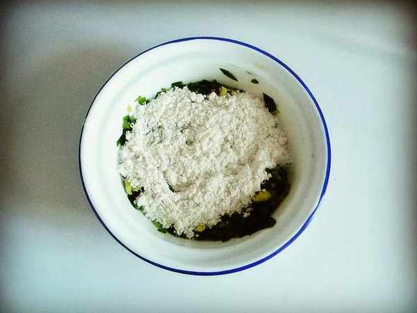 然后放入面粉,很多时候我喜欢放全麦粉或玉米粉,这里自己掌握,随意,放粗粮烙好的饼趁热会有酥脆感。今天我放的普通白面粉。