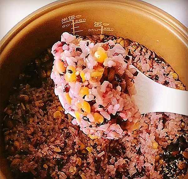 首先用电饭煲煮杂粮饭,可以用小米、燕麦米、藜麦米、大米和糯米等,看看家里有什么,随便放都行。只是注意其中糯米不能少。杂粮不爱熟,可以提前浸泡后再煮。