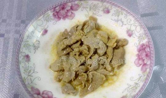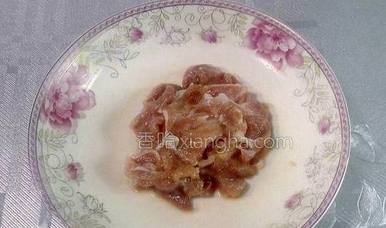 6.炒锅中放适量油,烧热后放入肉片,翻炒至肉色发白断生,盛出,备用。